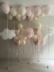 В сеті:Скляна куля 60 см з бантиками та написом У зв'язці по 12 шт.6 прозорі з пінопластом 4 серця з написами 6 даблстафи8 однотонні Хмаринки 2шт 15 шт під стелю з дощиком